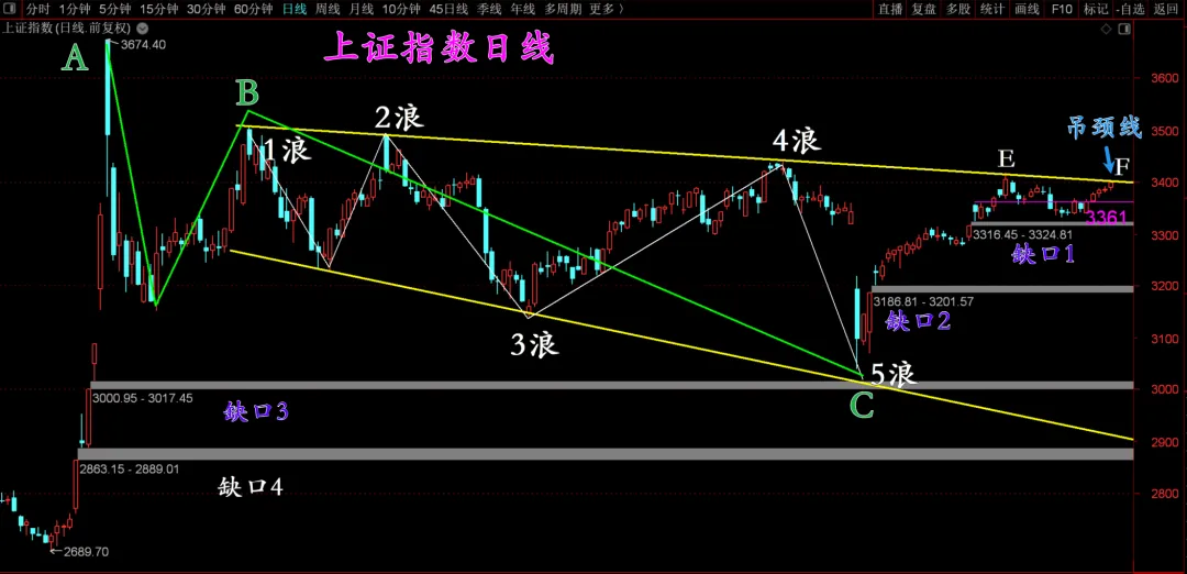 而这中间,最强的支撑位就是紫色线3361点,不破的话,依旧是牛市。