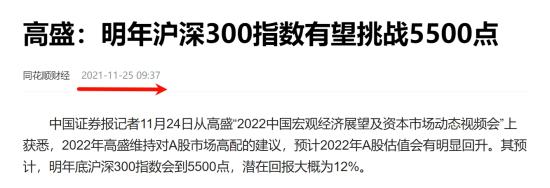 在2021年11月25日的时候,高盛发布自己的观点“看涨沪深300指数去挑战5500点”。