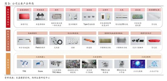 2、已向三星提供钛金属外观件,有望受益苹果MR销量增长钛合金越来越受到手机厂商青睐,在iPhone15pro系列中,苹果首次采用全新航空级钛金属边框,钛金属的使用使得新款iPhone在保持坚固耐用的同时,实现了重量的显著减轻;与此同时,钛金属机身的拉丝表面处理技术使得其具有更好的抗拉伸效果具有更舒适的边框手感。三星、荣耀、小米等多款手机也陆续导入钛合金材料。2023年10月底,公司安卓客户智能手机钛合金结构件项目也顺利实现量产,公司向三星S24提供钛合金金属外观件,在交货速度和良率等方面都取得了客户的高度认可,为后续新项目的拓展奠定了坚实基础。此外,苹果Vision Pro拆机显示,长盈精密为其提供结构件。西部证券研报称,随着苹果MR产品强势入局,有望推动行业进入新一轮的产品创新,带动行业出货。3、2017年就顺利通过宁德时代的供应商认证,并深入合作精密结构件是动力电池的关键组件之一,结构件成本占16%,仅次于正极材料。据GGIl数据,2022年中国锂电池结构件市场规模为338亿元,同比增长93.2%,预计2025年有望增长至820亿元,2022-25年CAGR为34.37%。从市场竞争格局来看,据GGI数据,在方形电池结构件领域,科利达凭借近四成市场份额占据行业首位,震裕科技、立翔科技、长盈精密等位于第二梯队。公司坚持大客户战略,早在2017年就顺利通过宁德时代的供应商认证。2021年起配合客户进行产能扩张,公司在宁德、溧阳宜宾等地分别建设配套自动化产线项目,目前均陆续进入量产。2023年9月,公司进一步募集资金投资于动力/储能电池零组件项目,预计项目达产后有望分别新增顶盖、壳体、箱体零组件2.16亿PCS、2.88亿PCS和34万PCS产能,占公司现有产能139.53%、360%和76.92%。2017年长盈以1.12亿元增资和股权收购的方式取得苏州科伦特40%股权,合计持有科伦特70%股权。科伦特是国内领先的电连接产品供应商,可为客户提供电连接母排、电池模组连接片、高压盒等各种产品及方案,广泛应用于航空航天、高速机车、新能源汽车、清洁能源逆变系统、变频器等领域。公司与特斯拉首次展开合作,并逐步成为特斯拉新能源汽车零组件的重要供应商,部分高精度产品占据核心供应份额。目前长盈已切入Model3以及ModelY机型供应链,主要提供中高压软连接器以及内饰件。西部证券单慧伟研报指出,公司经过多年“双调整”战略,已初步形成消费电子精密结构件及模组和新能源零组件及连接器产品双支柱战略格局。展望未来看好:1)持续深耕消费电子业务,绑定苹果、三星等优质客户,钛合金中框+XR结构件助力业绩增长。2)延伸布局新能源零组件,伴随产能释放叠加新增订单放量,产能稼动率持续提升有望带动盈利能力修复。考虑到公司各项业务有望迎来收获期,打开新一轮增长空间,预计公司2024-26年归母净利润分别为7.80、8.29、10.39亿元,同比增速分别为810.6%、6.3%、25.3%。