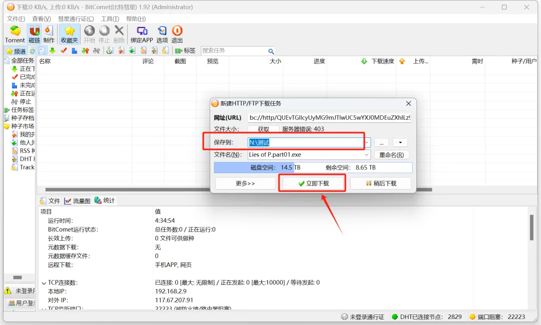 设定保存路径后,点击立即下载,这里注意:所有游戏的压缩包分卷,必须保存在同一个文件夹内,才可以正常使用!