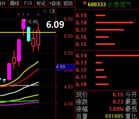 17:17 长春燃气股价站稳6.09元可以参与,止损位是6元
