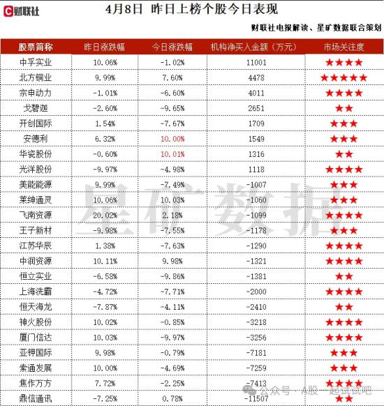 昨日机构净买入的8股今日涨跌互现,2股涨停。